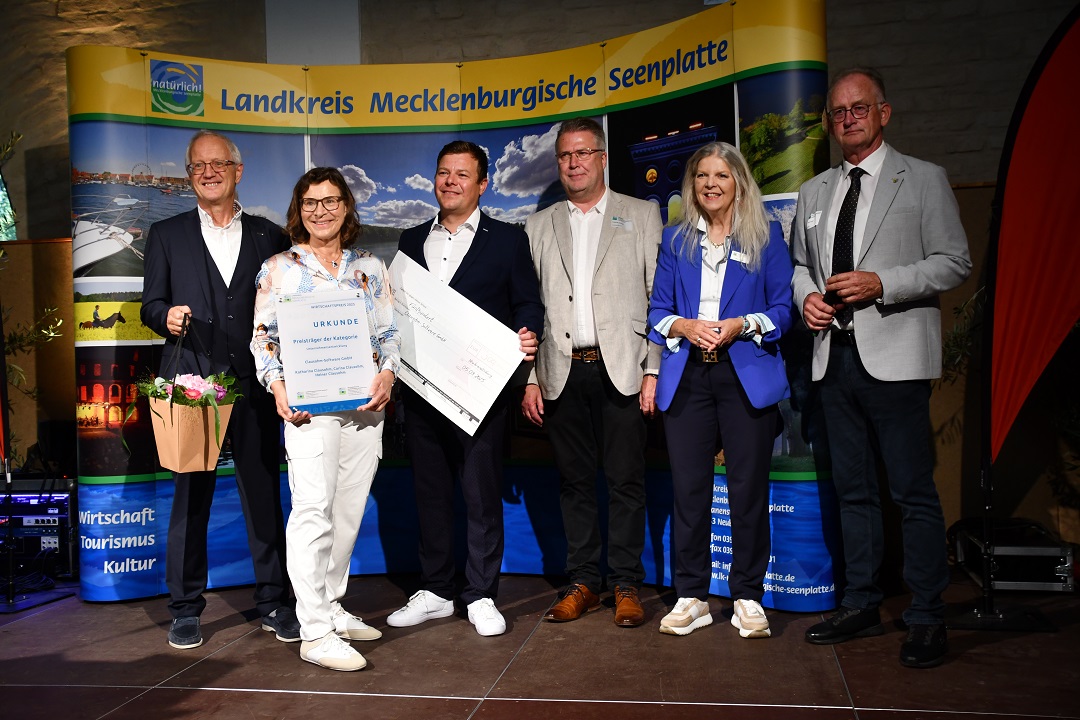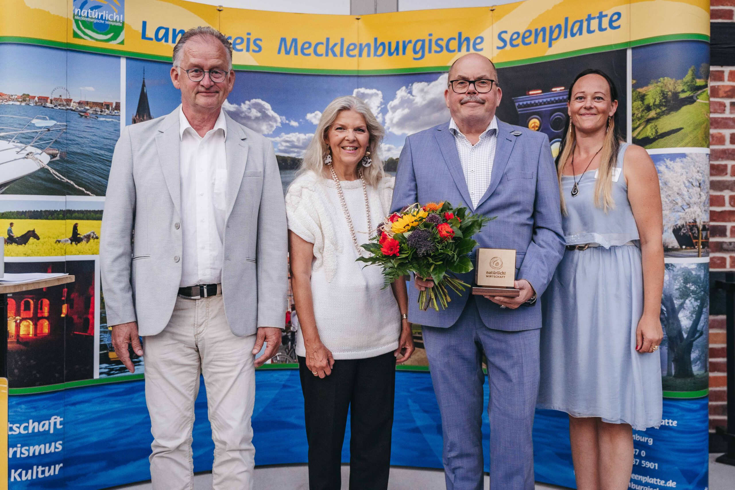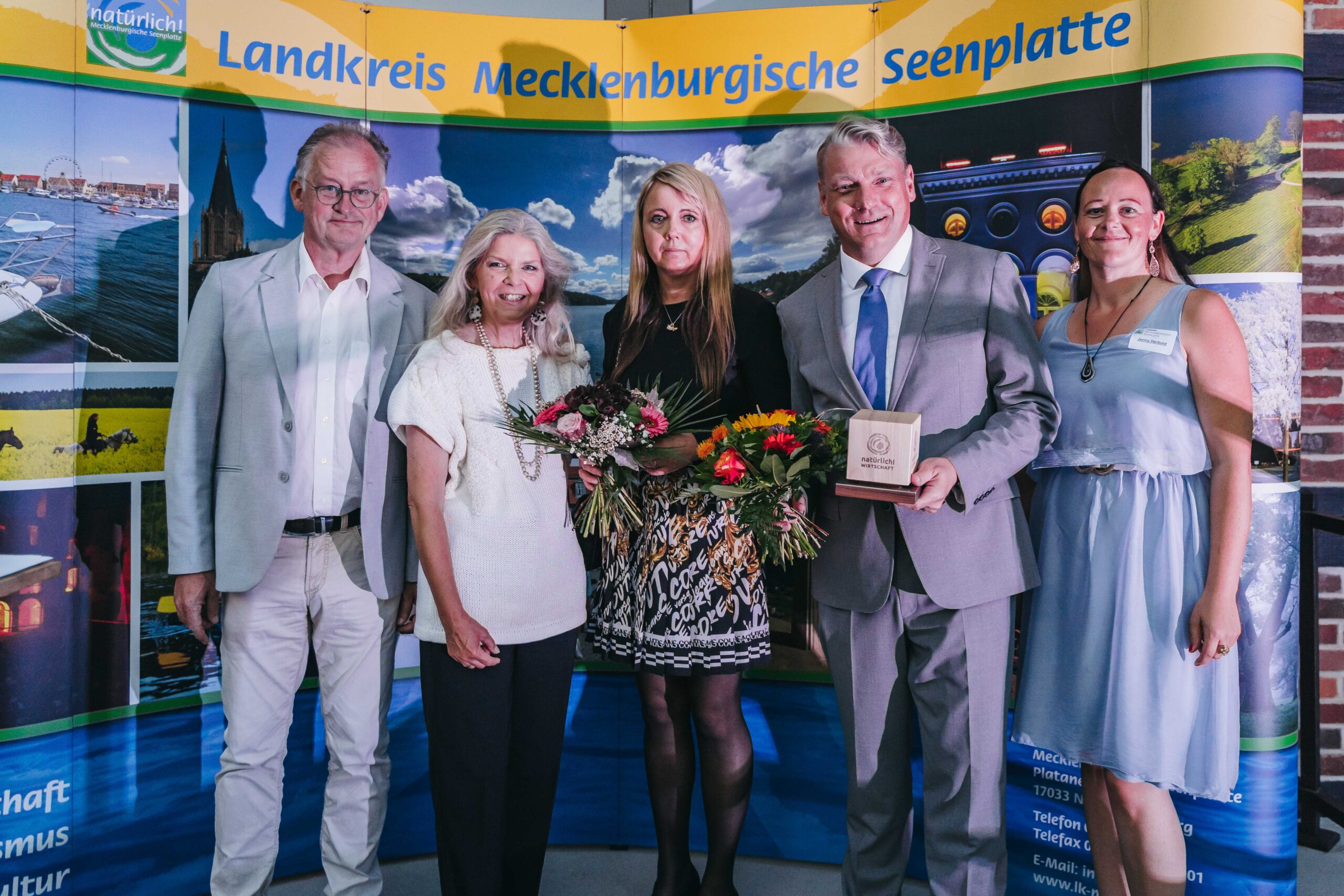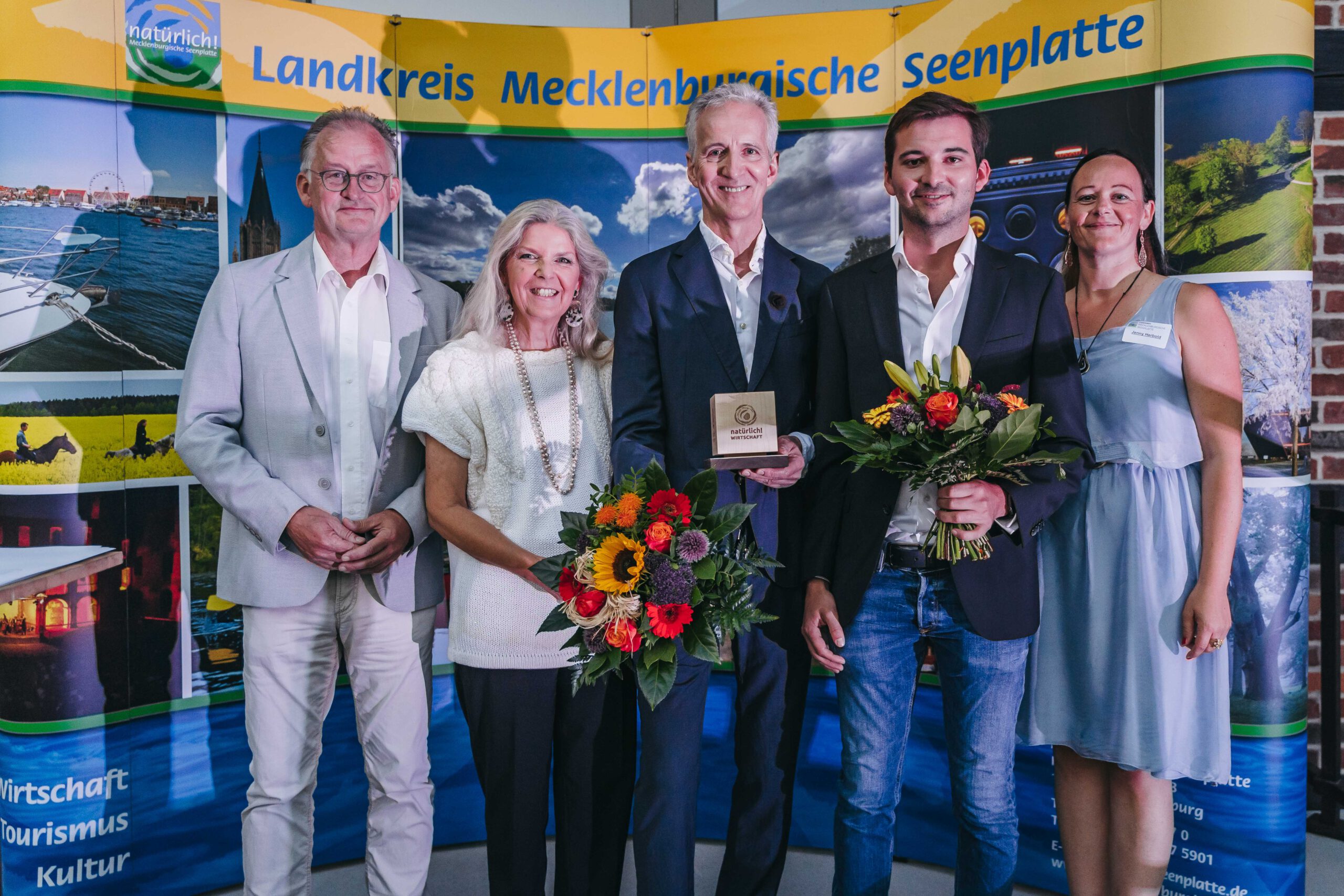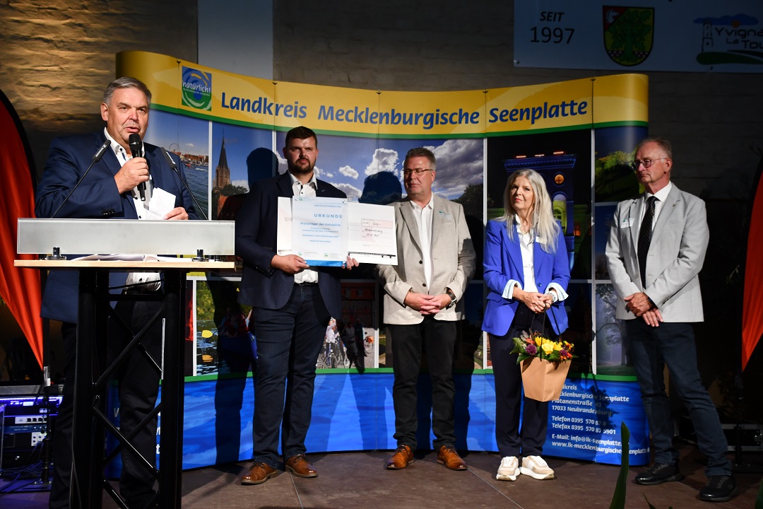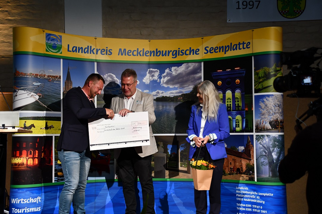 Am 05.09.2025, im Rahmen des Jahresempfangs des Landkreises Mecklenburgische Seenplatte, verliehen Landrat Heiko Kärger, Kreistagspräsident Thomas Diener und die Geschäftsführerin der Wirtschaftsförderung Mecklenburgische Seenplatte GmbH (WMSE), Sabine Lauffer, in der Traditionshalle Ivenack den diesjährigen Wirtschaftspreis des Landkreises.